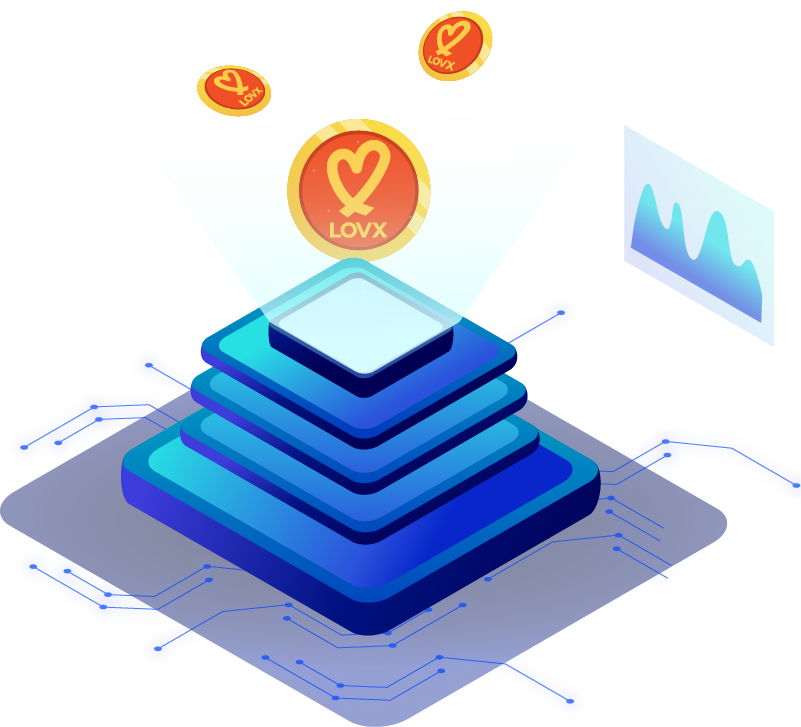 Nodes are at the core of our Blockchain, functioning through smart contracts to validate and back up e-gift and licenses transaction data. As a node license holder, you play a crucial role in maintaining network integrity of the ecosystem and, in return, receive daily rewards in LOVX coins for performing these essential blockchain functions.